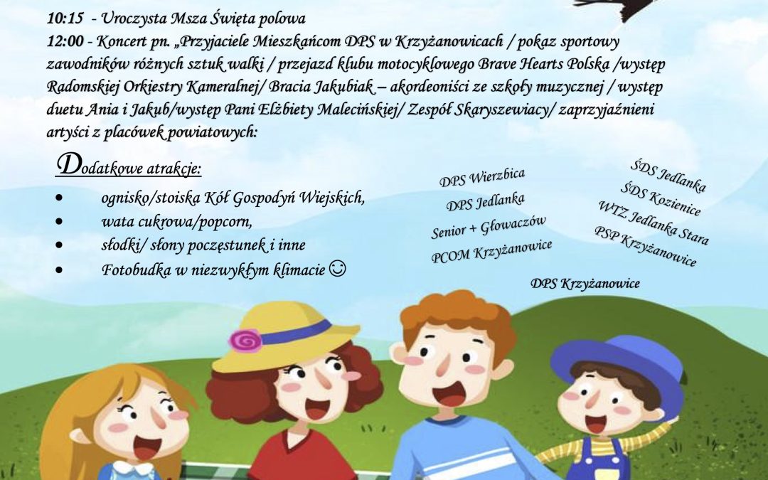 Serdecznie zapraszamy Rodziny naszych Mieszkańców na I Piknik Rodzinny „Otwarte drzwi”, który odbędzie się w dniu 21.09.2025r. (niedziela).